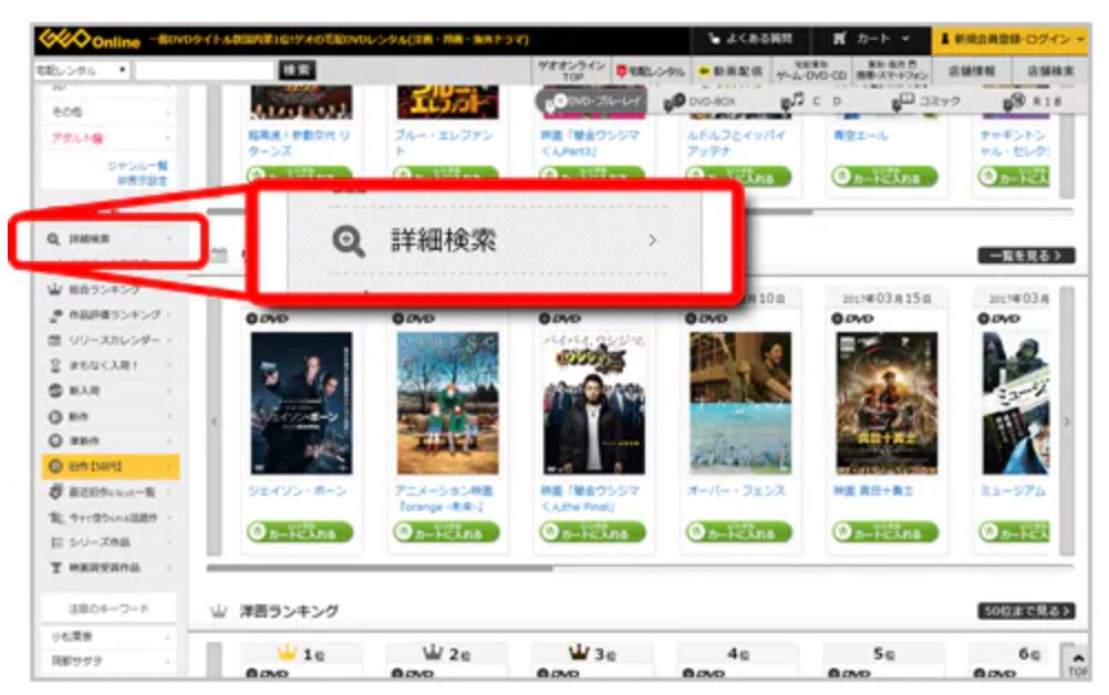 画像引用元:ゲオ宅配レンタル公式「詳細検索」より