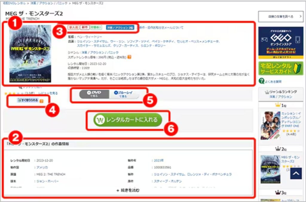 画像引用元:ゲオ宅配レンタル公式「作品ページの見かた」より