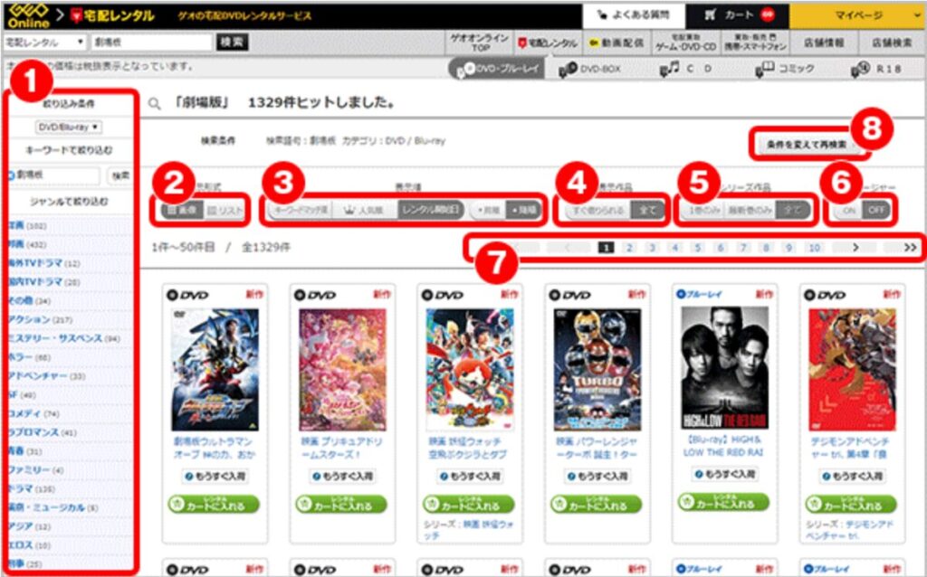 画像引用元:ゲオ宅配レンタル公式「検索結果の見かた」より
