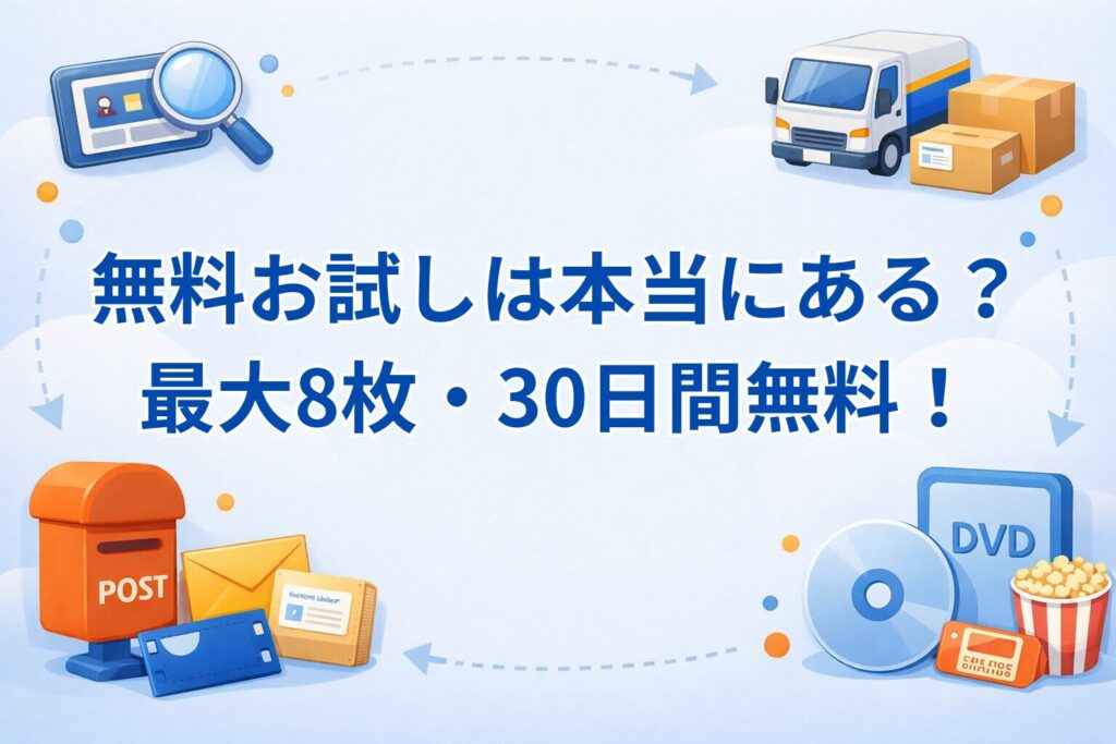 月額2,046円(税込)のスタンダード8コースが、最大30日間・8枚まで無料で使えます。送料も返却期限もないので、費用ゼロでサービスの使い勝手を確かめられます。