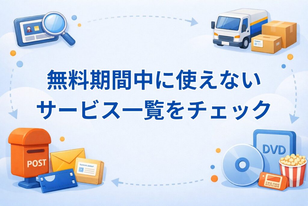 一部のサービスは無料期間中に制限がかかっています。「使えると思っていたのに使えなかった」とならないよう、先に確認しておきましょう。