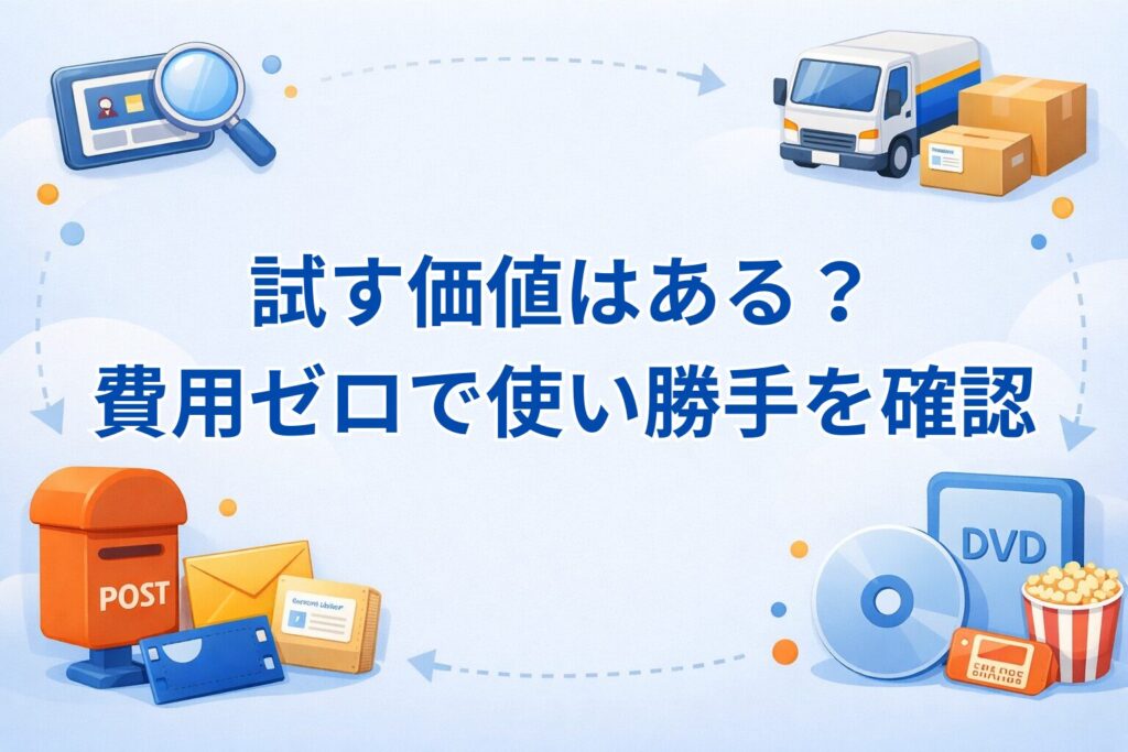 まずは準新作・旧作のラインナップと配送スピードを確かめる期間として活用するのがおすすめです。