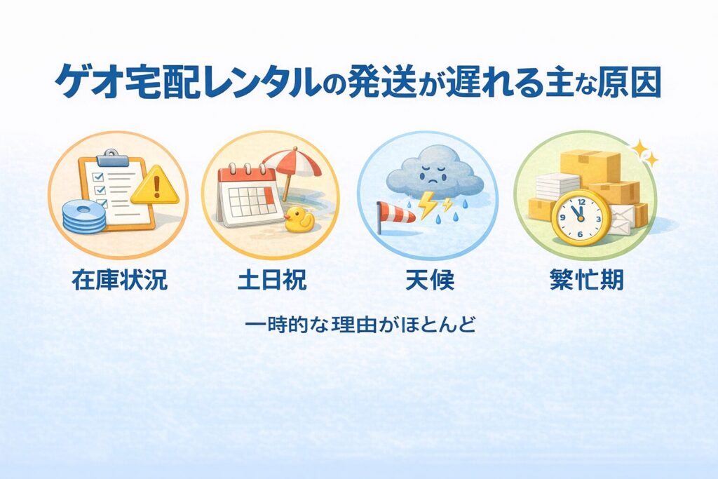 ゲオ宅配レンタルの発送が遅延する主な原因