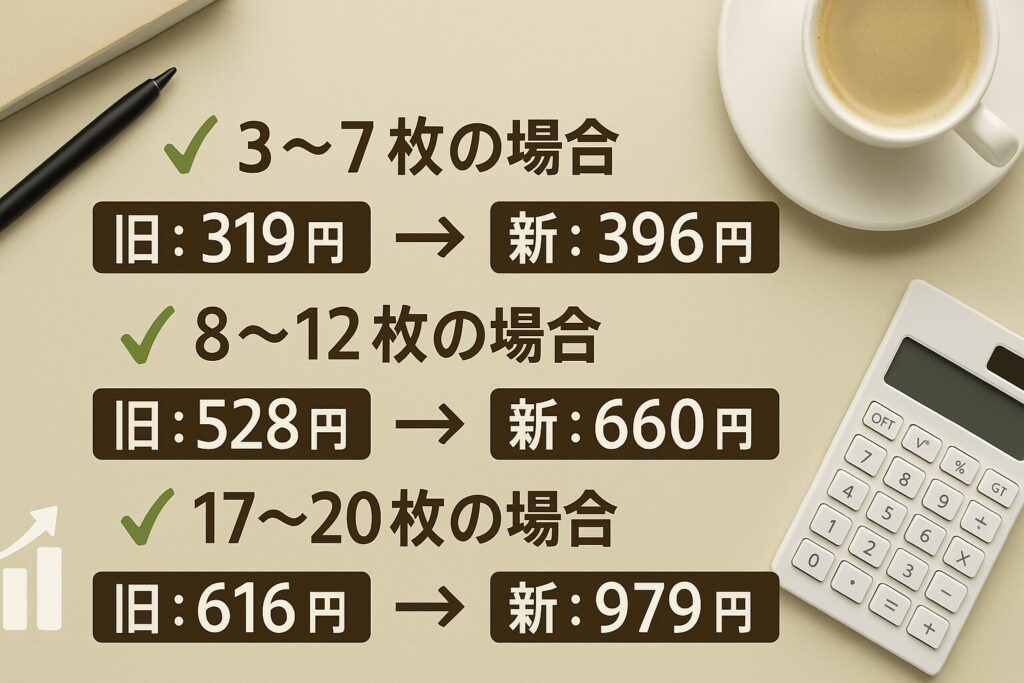 送料の区分が細かくなり、少ない枚数ほど1枚当たりが割高に感じやすくなりました。
