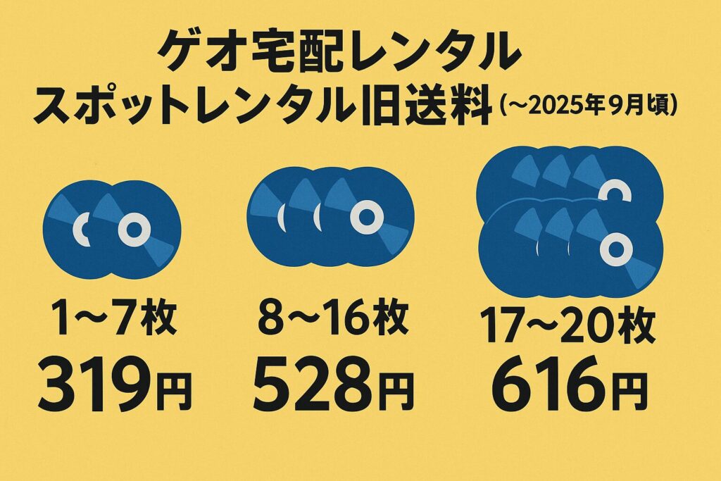 ゲオ宅配レンタルの値上げは「スポット送料」と「旧作キャンペーン価格」が中心です。月額プランそのものは大きく変わっていませんが、単発で利用する人ほど負担が増えやすい傾向があります。